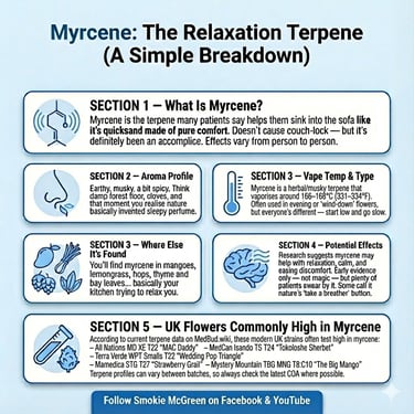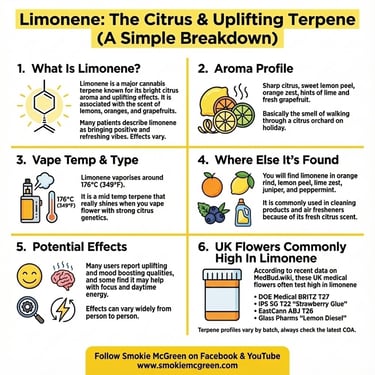 Terpenes are the natural compounds that give each flower its unique flavour and aroma profile. From citrus and pine to earthy or sweet notes, they play a key role in shaping your experience. Different terpenes are commonly associated with different effects and characteristics, which is why patients often explore terpene profiles, not just THC percentages, when choosing the right flower for them.